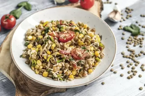 Муджадара, одно из наиболее популярных блюд арабских стран, давно завоевала популярность не только среди местных жителей, но и у гурманов по всему миру. Считается, что даже в 11 веке это сытное угощение спасало голодных, ведь в его основе простые ингредиенты: рис и чечевица. Изначально это было блюдо бедняков, но сегодня муджадара привлекает внимание и ценителей растительного рациона, превращаясь в здоровую альтернативу животным белкам. Сочетание чечевицы, полезных овощей, а также вяленых томатов делает его не только питательным, но и впечатляюще вкусным!