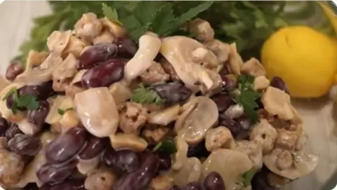 Главный секрет «Секунды» — доступность всех компонентов. Все, что нужно, легко найти в ближайшем магазине. Блюдо основывается на консервированных продуктах и хрустящих сухариках. Уникальное сочетание грибов, фасоли и сухариков вносит свежесть и особый вкус в каждую порцию.