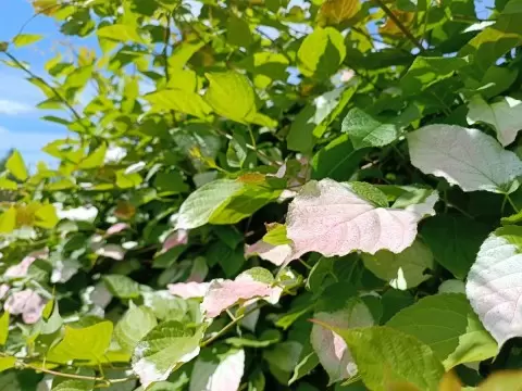 - Актинидия коломикта: эта лиана, известная также как уральское киви, радует не только неповторимым внешним видом, но и сладкими ягодами, которые можно использовать в кулинарии. Ее морозостойкие листья с яркими пятнами создают уникальный визуальный эффект.