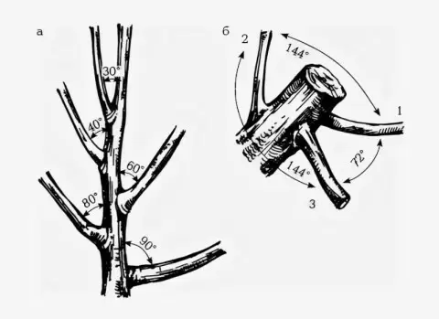 Если ветви отходят от ствола под углом 45–60°, они становятся более устойчивыми. В случае, если угол слишком острый, ветки могут расти в неправильном направлении, что часто приводит к их поломке. Как улучшить ситуацию: