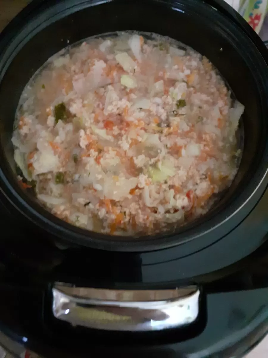 Теперь все подготовленные компоненты складывают в глубокую емкость. Добавьте рис и перемешайте с солью и специями по вкусу. В конце готовую массу переложите в чашу мультиварки и добавьте воды до уровня, чуть ниже максимального. Установите режим «Тушение» на 40 минут. Для любителей суховатых блюд подойдет режим «Каша». За 5 минут до окончания готовки можно добавить зелень.