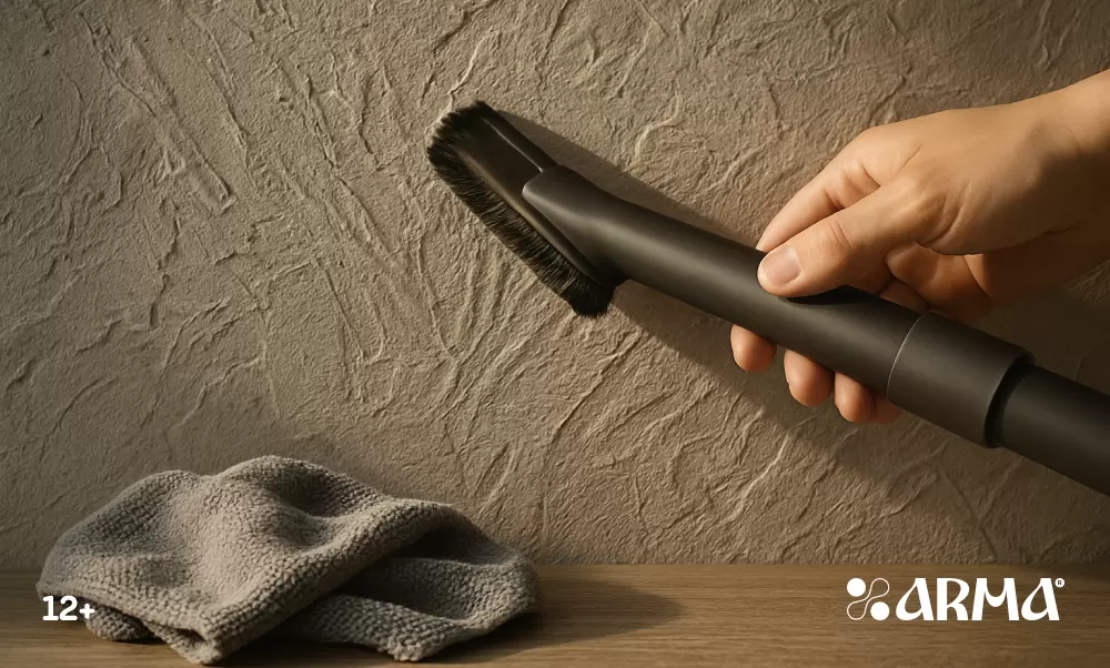 - Удаление пыли: Начните с сухой уборки, используя щетку или пылесос с мягкой насадкой, чтобы избавиться от пыли.