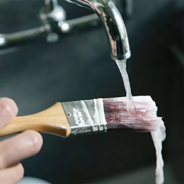 Маленькая бытовая картинка: вы красили кухню, кисть оставили в миске с водой на ночь — ворс согнулся и стал жестким. Этого легко избежать, если сразу промыть и положить горизонтально.