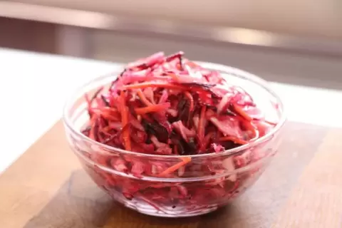 1. Подготовка овощей: Свёклу и морковь тщательно моют, после чего натирают на крупной терке. Капусту нужно нарезать тонкими полосками при помощи ножа или шинковки.