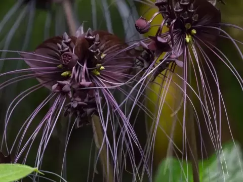 Китайский мышецвет (Tacca chantrieri) — экзотическое растение, произрастающее в затененных влажных лесах Китая и Малайзии. Внешний вид этого представителя рода Такка не вызывает особых вопросов до того, как он зацветает. Тогда появляются устрашающие черные цветы, напоминающие морду инопланетного существа. Местные жители, заметив эту схожесть, прозвали его «мышецветом» за его подобие к сказочным летучим мышам.