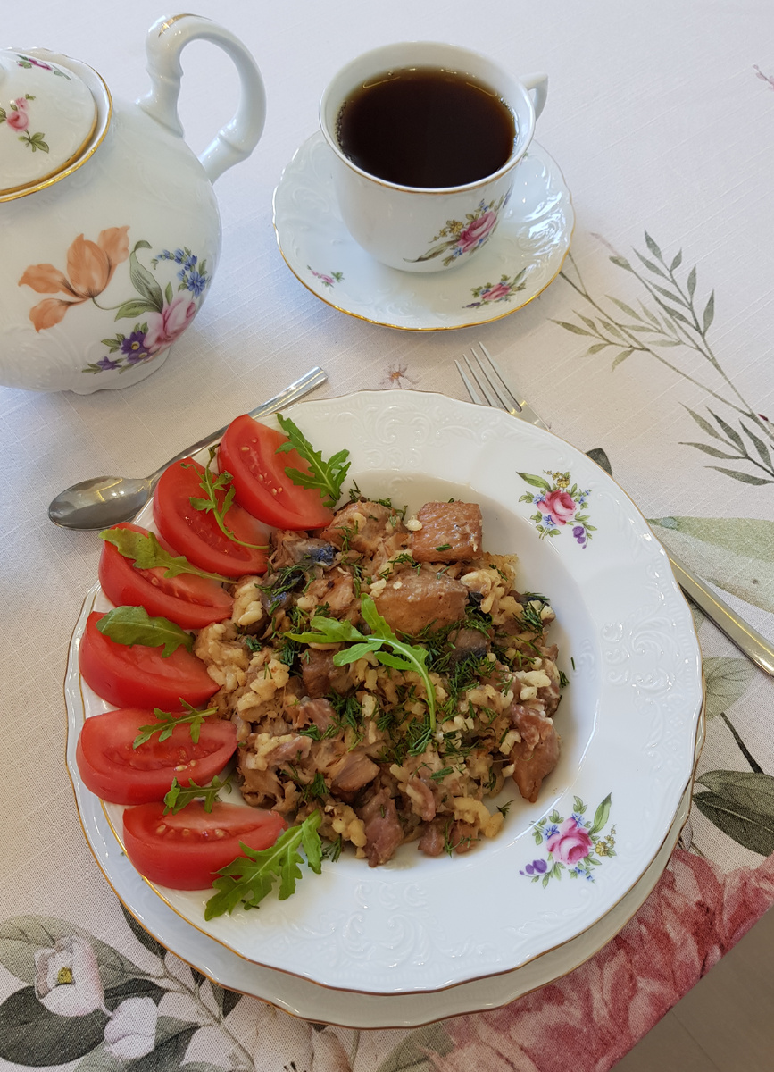 Теплое и уютное блюдо, идеально подходящее для прохладных осенних или зимних дней. Сочетание нежной свинины, ароматных грибов и рассыпчатого риса создаёт гармонию вкусов, которая согревает и дарит комфорт.