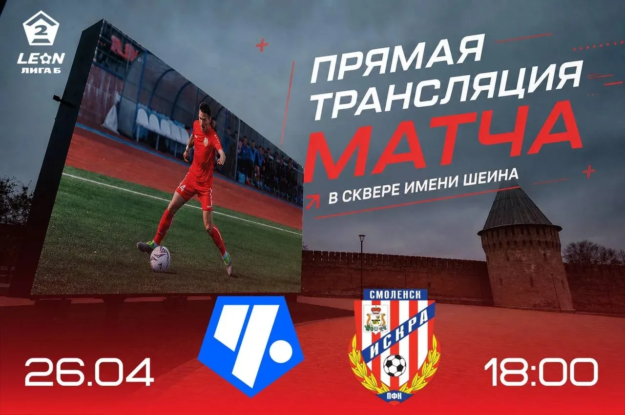Футбольный матч смоленской "Искры " с ФК «Чертаново», который наша команда проведёт сегодня на выезде, будет транслироваться на большом экране в сквере имени Шеина! Начало игры в 18.00, сообщает пресс-служба клуба.