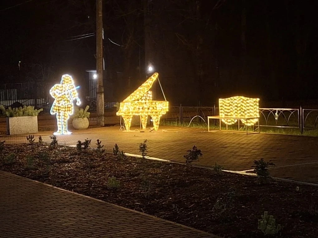 К юбилею поселок получил и новое праздничное оформление. Для создания особой атмосферы в Хиславичах установлены световые фигуры, декоративные арки, консоли, рояль и мраморные цветочницы-вазоны.